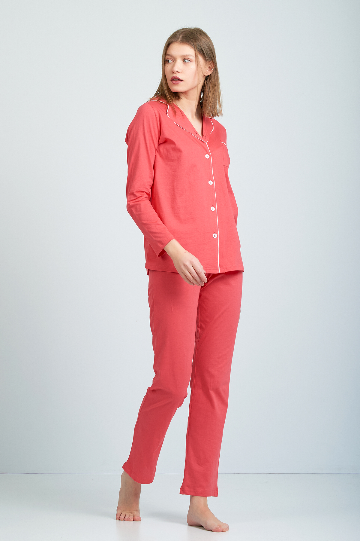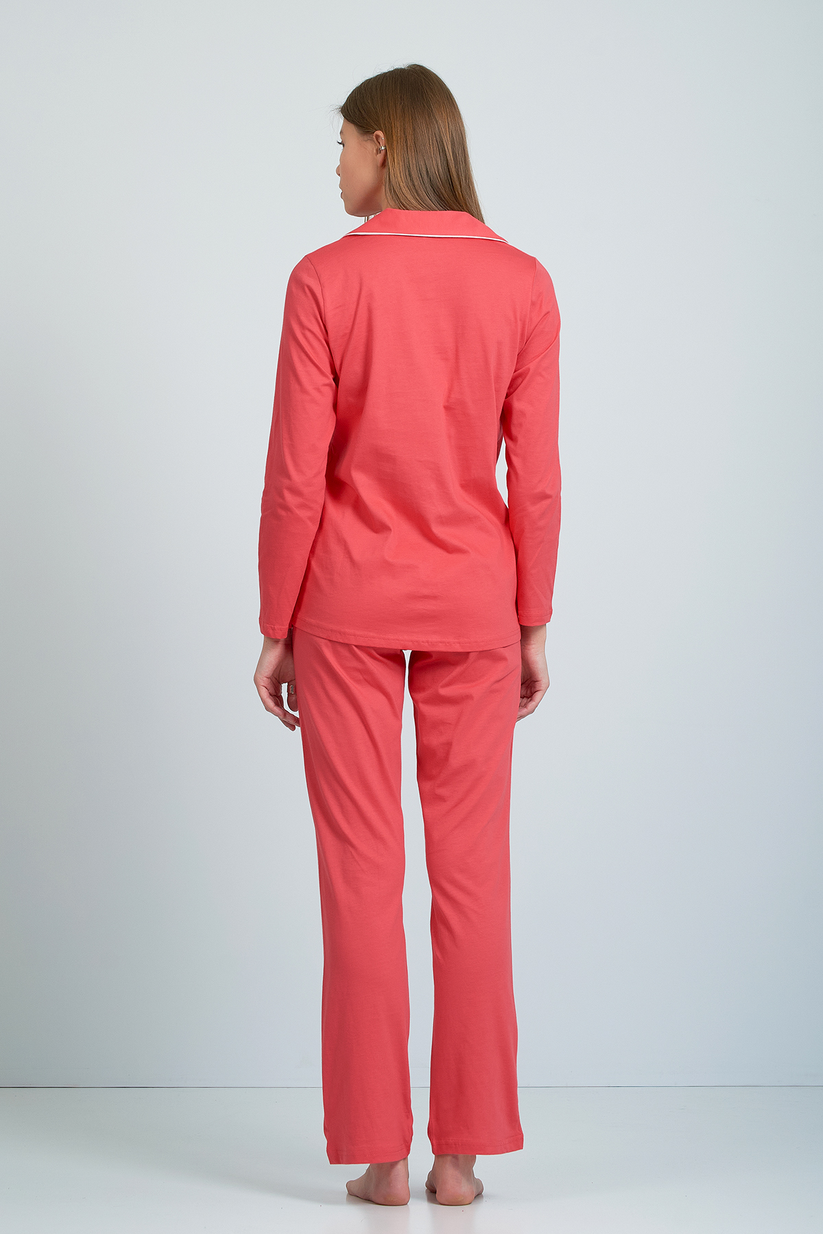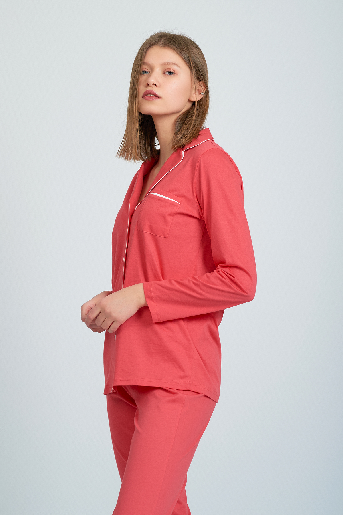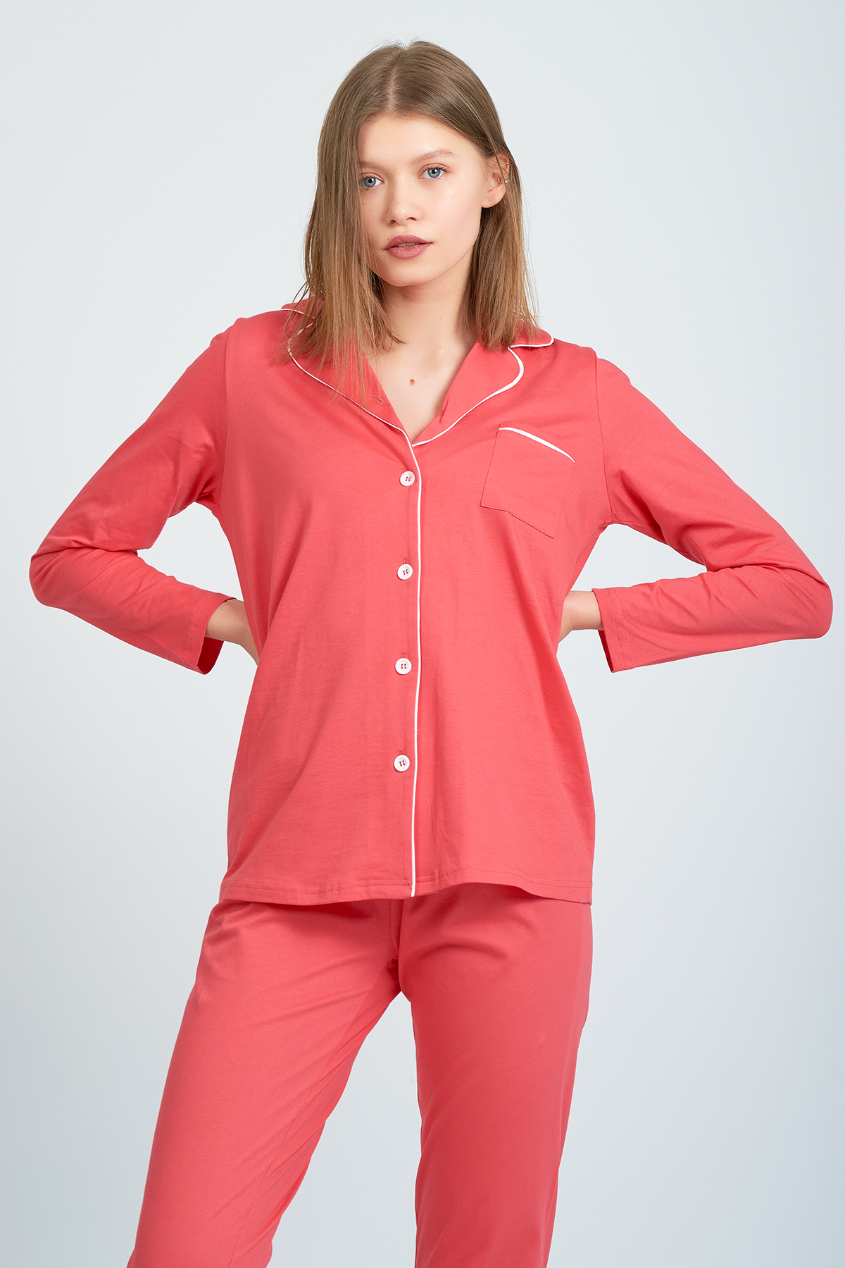 Moda Clubu Gömlek Yaka Pembe Pamuklu Pijama Takımı