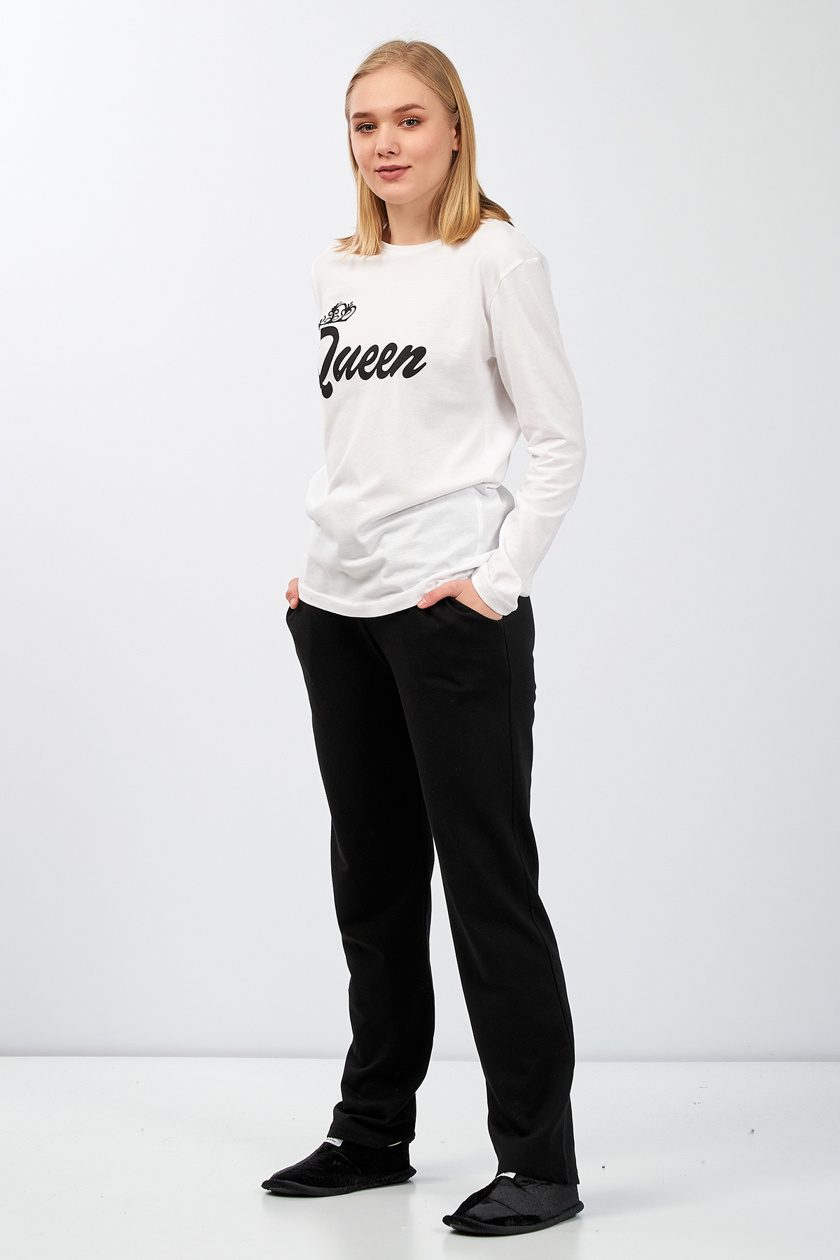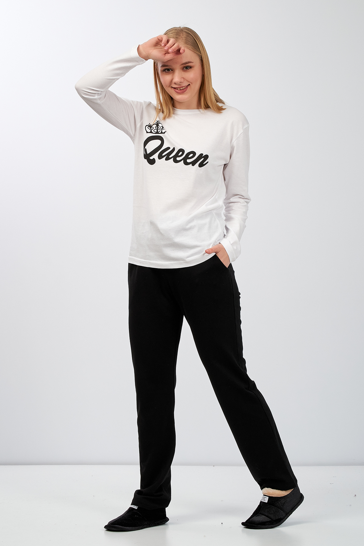 Moda Clubu Siyah-Beyaz Pijama Takımı Queen – Kadın